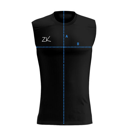 Find a similar item of clothing that fits you well. Lie it down on a flat table. Measure your existing item from top to bottom (measurement A) and from underarm to underarm (measurement B). Compare these measurements with the detailed size chart below to find your size.