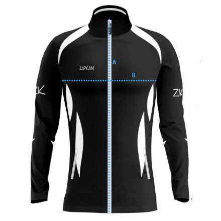 Find a similar item of clothing that fits you well. Lie it down on a flat table. Measure your existing item from top to bottom (measurement A) and from underarm to underarm (measurement B). Compare these measurements with the detailed size chart below to find your size.